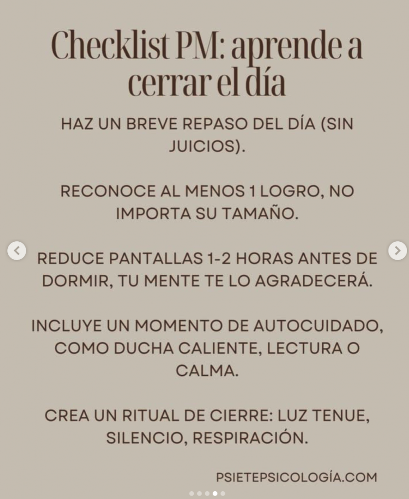Cierre mental: repasa lo que hiciste y lo que no → sin castigarte.